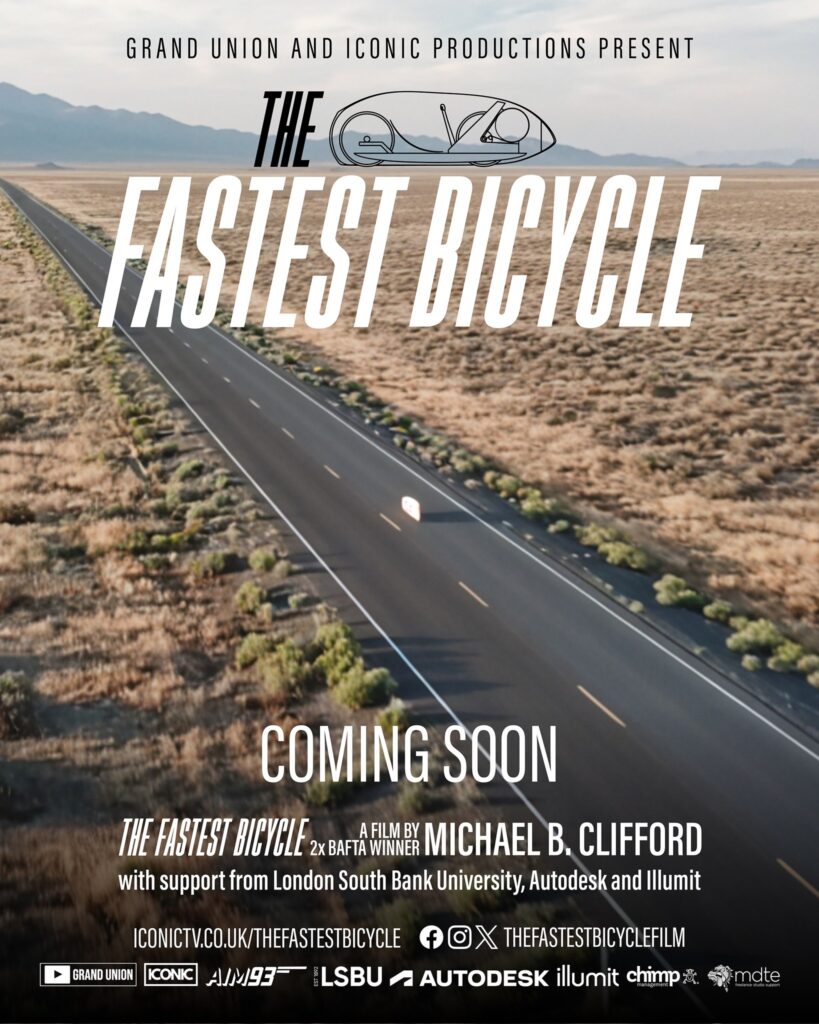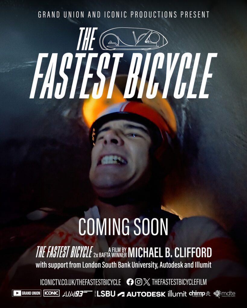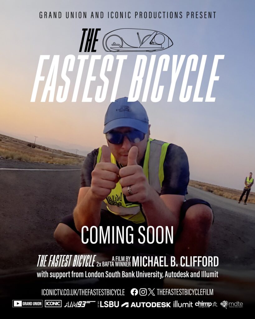A gallery of posters and a trailer are available below, so you can get a feel for the project visually as well. More information can be found on the film’s Facebook page: https://www.facebook.com/thefastestbicyclefilm/ and the official website: https://iconictv.co.uk/thefastestbicycle/. A good background read about the LSBU team and their journey is available here: https://www.lsbu.ac.uk/about-us/news/new-film-tells-story-of-lsbu-students-attempt-to-create-fastest-bicycle.